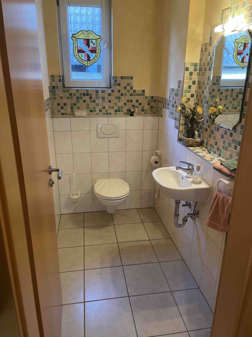 Das Haus ist voll unterkellert. Neben den Kellerräumen und dem Hauswirtschaftsraum (Anschlüsse für Waschmaschinen und Trockner) finden Sie hier eine Toilette mit Waschbecken und ein Raum der bereits zu Wohnzwecken ausgebaut wurde. Ein idealer Raum für Ihre Familienfeier, Ihr Homeoffice oder Ihrem Gästezimmer.