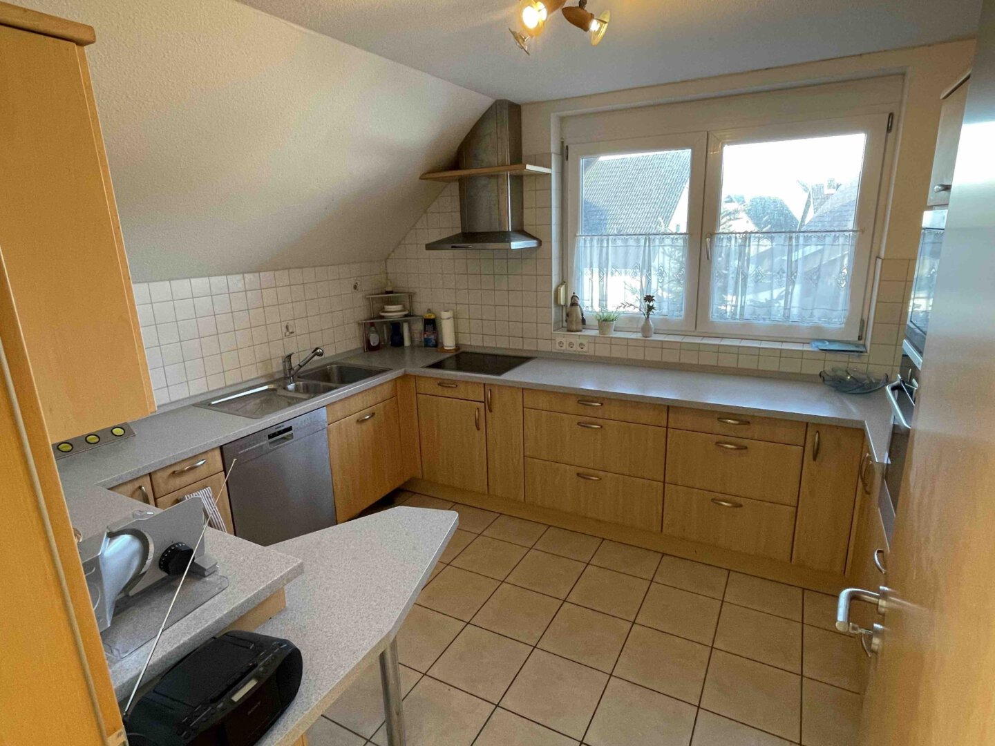 Beide Wohnungen sind mit einer Einbauküche, einem Gäste-WC und einem praktischen, kleinen Abstellraum ausgestattet. Große Fenster und die Ausrichtung des Hauses sorgen für eine ideale Belichtung der Räume.